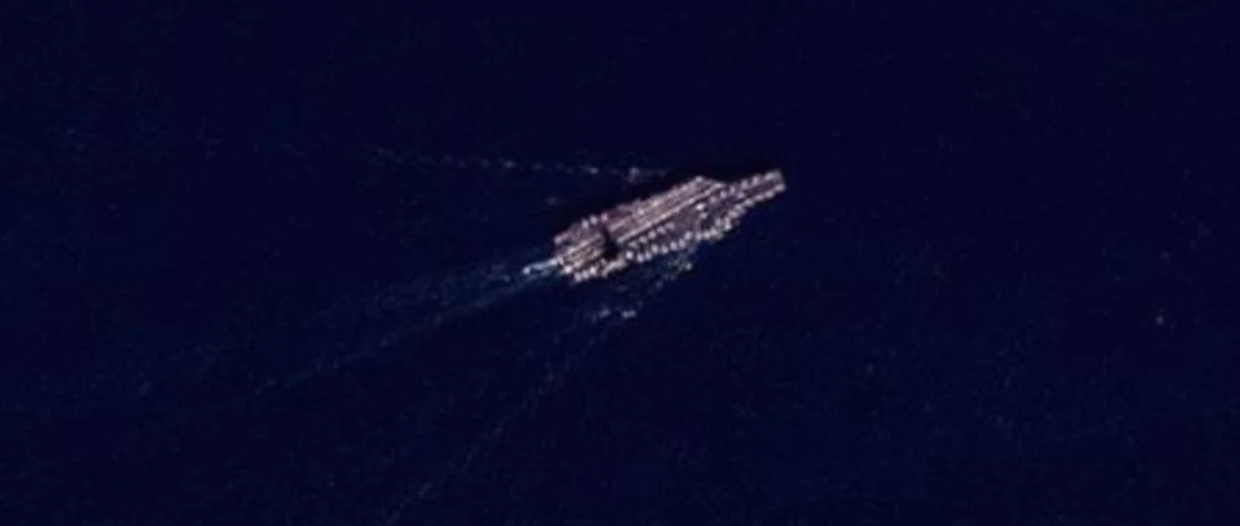 Satellite imagery of the USS Gerald R. Ford transiting the Strait of Gibraltar, February 20, 2026. Source: Planet Analysis and reporting by @Shayan86