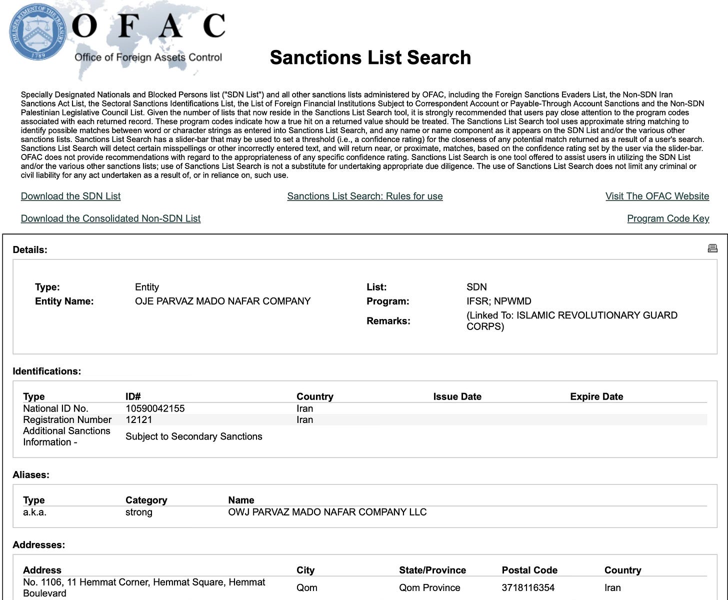 The China-linked side of the network is even more mature. Treasury actions in late 2025 targeted Chinese and Hong Kong-based actors supporting Mado’s sourcing efforts, including intermediaries who arranged supplier access, travel, and procurement activities on behalf of Iranian defense entities. March 2026 designations further expanded that picture, identifying entities in Hong Kong, Taiwan, and China that were procuring technology for HESA even as its facilities were under attack.