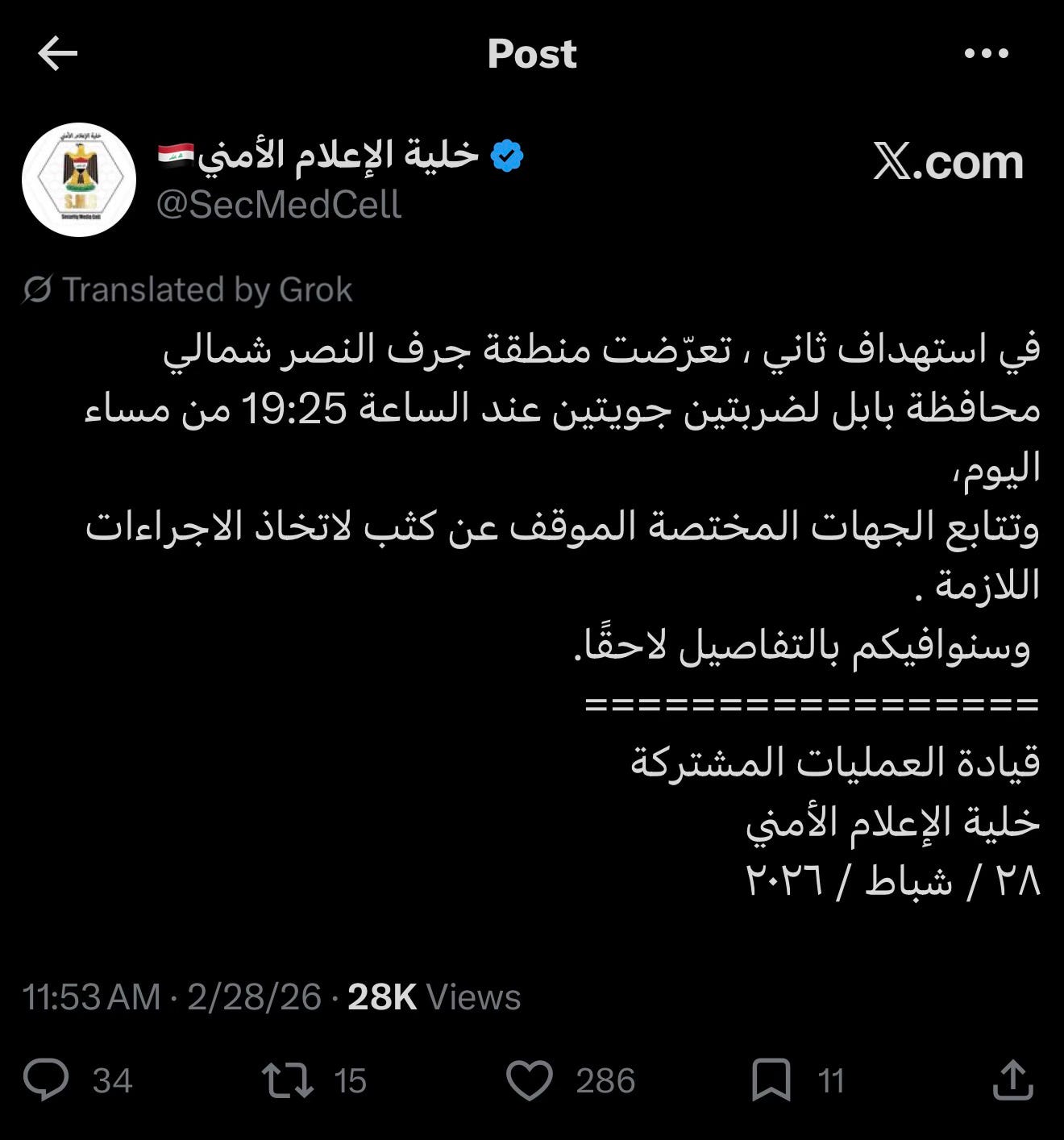 Alhurra reported that before the strikes, Washington sent a message to senior Iraqi officials warning that preventing militia attacks on U.S. interests would prevent Israeli involvement in Iraq. The message was reportedly circulated via WhatsApp. It did not hold. Jurf al-Sakhar was struck anyway, and Iraqi militia retaliation followed.