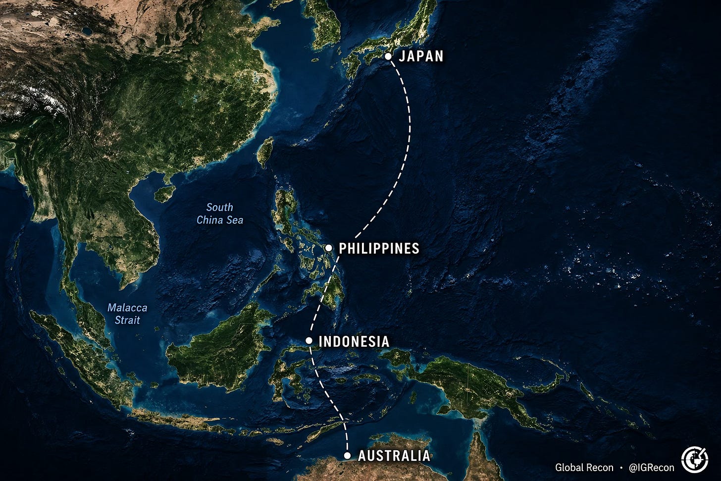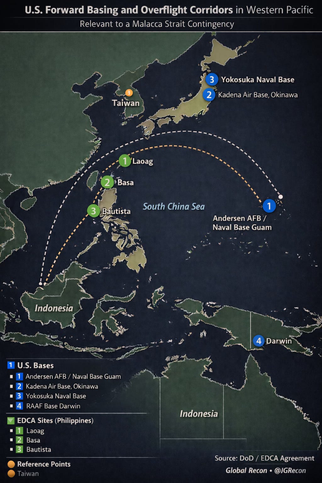 If overflight access formalizes on top of the MDCP, the architecture sharpens further. The United States would gain a continuous air corridor from Australia through the Indonesian archipelago to the South China Sea, completing a mobility network that already includes basing and access agreements in Japan, the Philippines, and Australia.