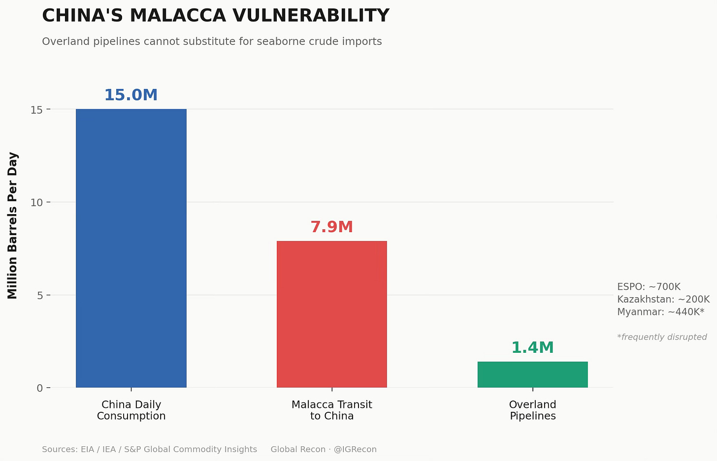China has managed the Malacca dilemma. It has not escaped it. The overland routes move at the margin. The tankers still carry the load.