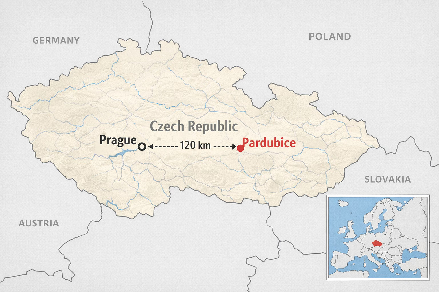 On the morning of March 20, a group of masked individuals entered an industrial complex in Pardubice, Czech Republic, doused a warehouse in flammable liquid, and set it on fire. By the time firefighters arrived, the storage hall was already gone. An adjacent administrative building burned with it.