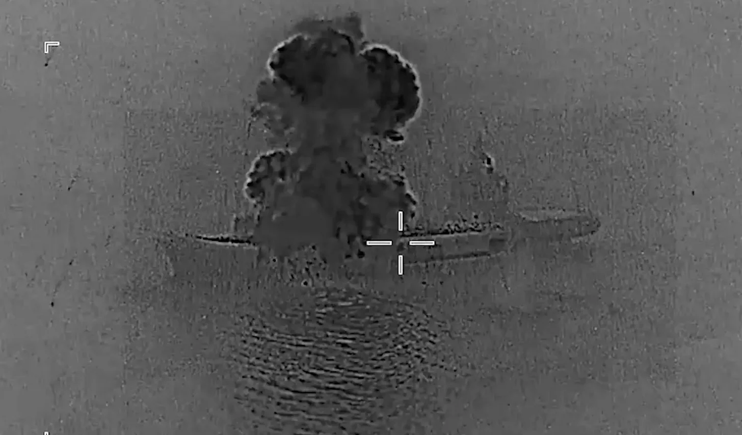 IRIS Shahid Bagheri drone carrier under strike. Image via U.S. Central Command, March 2026.