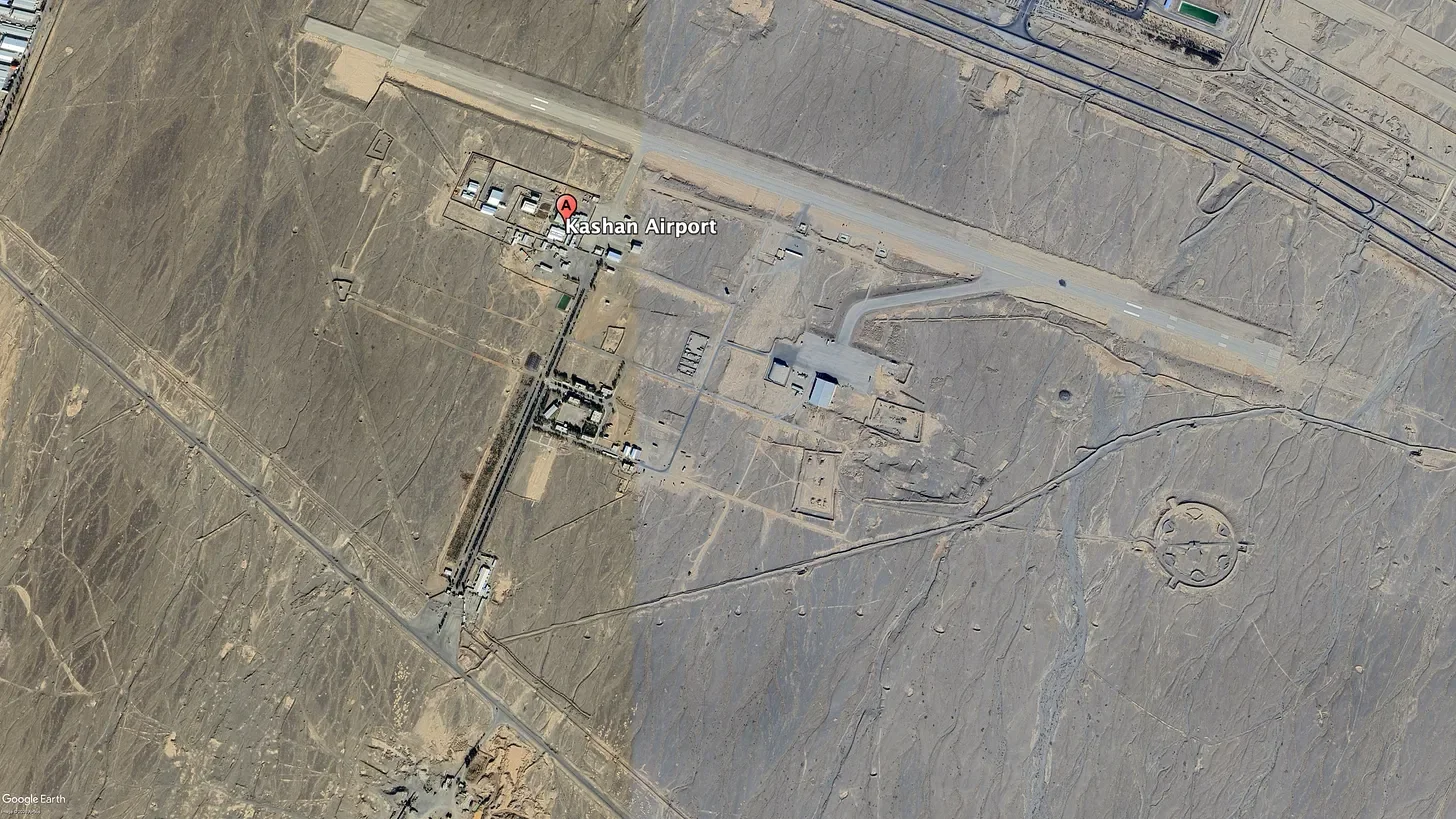 The Shahid Karimi UAV Base which shares a 3,000-meter runway with Kashan Airport, roughly 190 kilometers south of Tehran is a widely reported UAV training and operational site used by the IRGC Aerospace Force. Washington Institute analysis identified Shahed-129, Mohajer, and Saegheh drones present at the facility in pre-conflict satellite imagery.